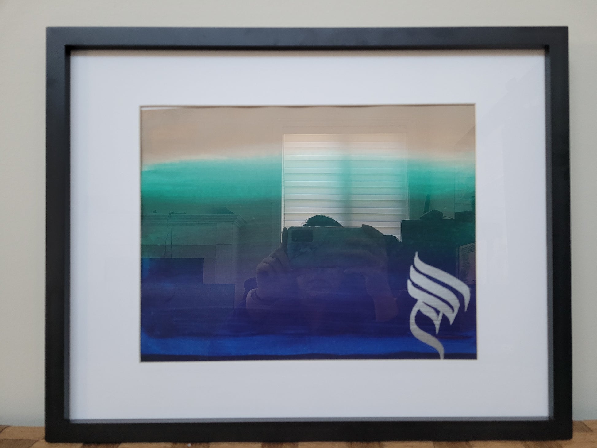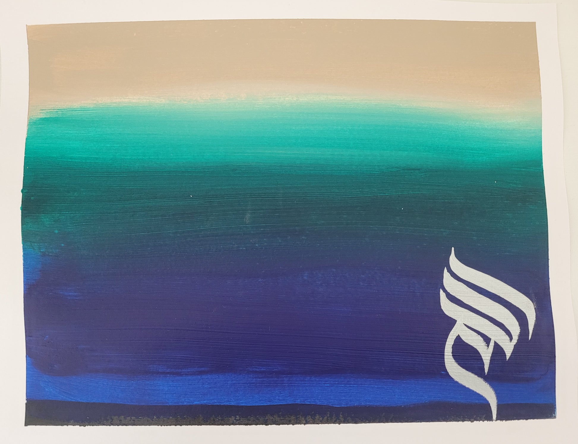 Calming oceanic colors with modern arabic calligraphy in silver ink.