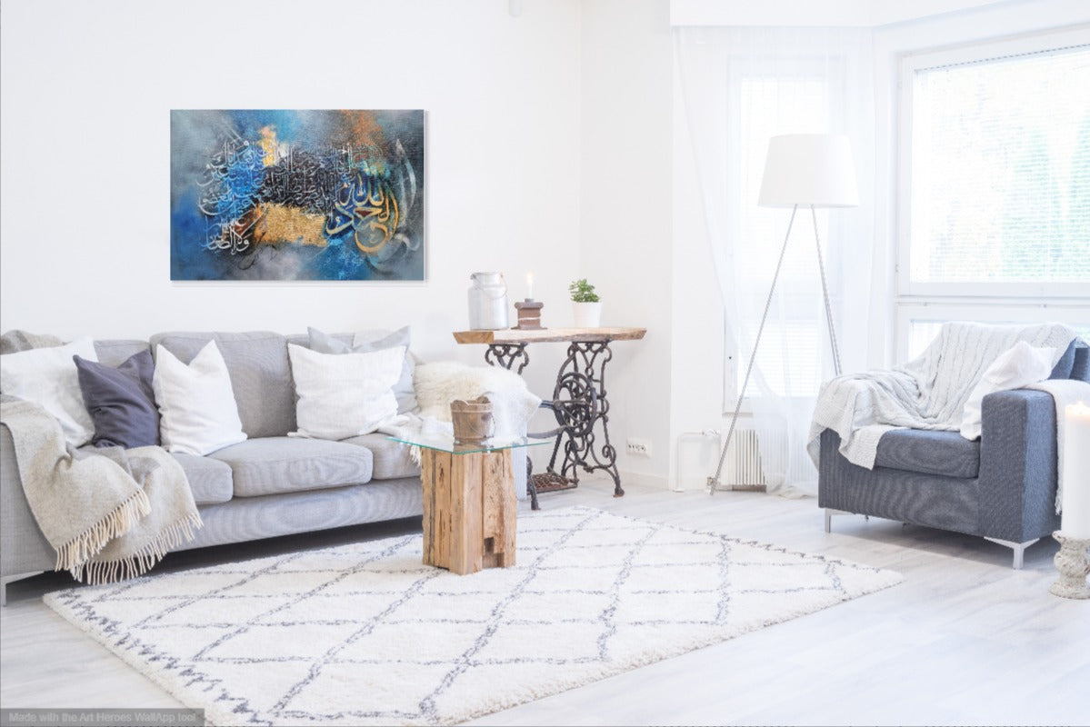 Bring this stunning piece home and incorporate Surah-Al-Fateha to your daily lives. The opening surah of the Quran which also commences every single of our salaat raka's. Is any of our ibadah ever complete without the recitation of this beautiful Surah? Every ayat in this surah touches the soul and collectively the ayats come together to incorporate gratitude, praise for The All-Mighty, prayer for guidance and protection into our lives.